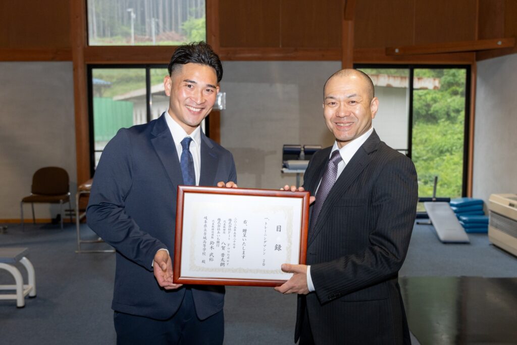 今回の寄贈は、「地域の未来を担う高校生たちの健康づくりを応援したい」という八賀の想いから実現したものです。自身も吉城高校で多くを学び、社会人としての土台を築いた経験から、「今の自分があるのは地元と母校のおかげ」と語ります。